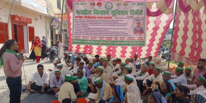 भारतीय किसान यूनियन टिकैत के पदाधिकारीयों ने भ्रष्टाचार के खिलाफ अनिश्चितकालीन धरना दिया।