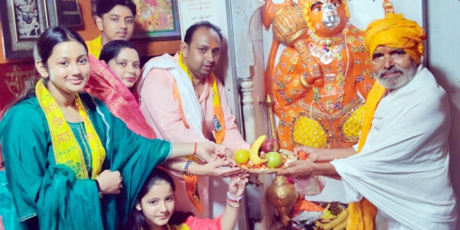 भक्तों ने हनुमान जी पर चोला चढ़ाकर की पूजा-अर्चना