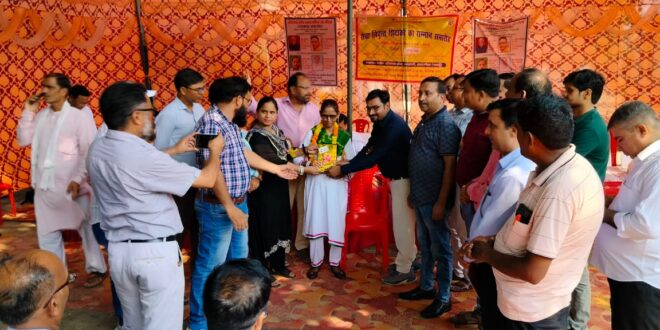 आज जनपद बदायूं के विकास क्षेत्र कादरचौक के ब्लॉक संसाधन केंद्र असरासी पर समस्त कार्यकारिणी, संघर्ष समिति उतर प्रदेशीय प्राथमिक शिक्षक संघ, शाखा- इकाई कादरचौक एवं खंड शिक्षा अधिकारी कादरचौक के बैनर चले सेवानिवृत शिक्षक सम्मान समारोह कार्यक्रम का शुभारंभ सरस्वती देवी के समक्ष दिलीप कुमार खंड शिक्षा अधिकारी कादरचौक ने दीप प्रज्ज्वलित कर एवं तस्वीर पर माल्यार्पण कर किया जिसमें वीरेंद्र सिंह , शाइस्ता परवीन व सौदान सिंह को सम्मानित किया गया साथ ही विकास क्षेत्र कादरचौक के ही राष्ट्रपति पुरस्कार प्राप्त शिक्षक मोहम्मद असरार (सेवानिवृत) उच्च प्राथमिक विद्यालय ककोड़ा एवं डॉ. जुगल किशोर उच्च प्राथमिक विद्यालय असरासी तथा राज्यपाल पुरस्कार प्राप्त शिक्षक प्रवीण कुमार उच्च प्राथमिक विद्यालय गंगपुर पुख्ता एवं ह्रर्देश चंद्र माथुर प्राथमिक विद्यालय चतुरी नगला जैसे गौरव शिक्षकों को भी सम्मान समारोह में सम्मानित किया गया। दिलीप कुमार खंड शिक्षा अधिकारी कादरचौक ने अपने संबोधन में कहा कि यह गौरवान्वित का विषय है कि कादरचौक ब्लॉक में महान विभूतियां की कमी नहीं है जिसका जीता जागता उदाहरण है की कदरचौक ब्लॉक में दो राष्ट्रपति पुरस्कार प्राप्त शिक्षक हैं और दो ही राज्यपाल पुरस्कार प्राप्त शिक्षक हैं हमारे ब्लॉक के समस्त शिक्षक नवाचार द्वारा अपने बच्चों को शिक्षण कार्य में निपुण बना रहे हैं यह हर्ष का विषय है कि लगातार 10 वर्षों से कादरचौक ब्लॉक खेलकूद प्रतियोगिता में भी जनपद स्तरीय विजेता घोषित होता रहा है। उत्तर प्रदेशीय प्राथमिक शिक्षक संघ शाखा इकाई कादरचौक के ब्लॉक अध्यक्ष बृजेश यादव जी ने कहा कि जो पुराने शिक्षकों के लिए टीईटी परीक्षा पास करने का ऑर्डर निकाला गया है उसके खिलाफ जनपद स्तरीय 16 तारीख को ज्ञापन दिया जाएगा आप सभी शिक्षक ससमय 16 तारीख को अध्यापक मालवीय आवास गृह पर पहुंचे आप सभी के अधिकारों की आवाज प्राथमिक शिक्षक संघ सदैव उठाता रहा है और उठाता रहेगा। आज सेवानिवृत शिक्षक सम्मान समारोह में आप सभी ने प्रतिभाग किया उसके लिए मैं सभी का बहुत-बहुत आभार व साधुवाद करता हूं। इस अवसर पर उत्तर प्रदेशीय प्राथमिक शिक्षक संघ शाखा इकाई कादरचौक के अध्यक्ष बृजेश यादव, मंत्री तरकीब दानिश, कोषाध्यक्ष कामिनी रानी, उपाध्यक्ष मोहम्मद जुबेर खान, सोमेश चंद्र व मुकेश यादव, राजीव कुमार जौहरी सहित कार्यकारिणी के समस्त सदस्य उपस्थित रहे। संचालन डॉ जुगल किशोर ने किया।