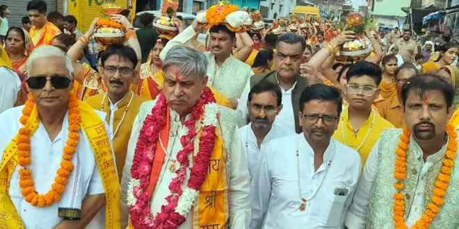 बिल्सी। मोहल्ला संख्या पांच स्थित सिद्धपीठ श्री बालाजी धाम की ओर से बृहस्पतिवार को श्रीमदभागवत महापुराण कथा सप्ताह के शुरु होने से पूर्व यहां पीले वस्त्र धारण कर महिलाओं ने मुख्य बाजार में कलश यात्रा धूमधाम से निकाली। जिसका जगह-जगह लोगों ने स्वागत कर पुष्प वर्षा की। बालाजी धाम पर सबसे पहले कलश एवं पोथी पूजन कराया गया। साथ ही यहां विभिन्न धार्मिक अनुष्ठान संपन्न कराएं गए। उसके बाद कलश यात्रा यहां से निकाली गई। यात्रा नगर के मोहल्ला संख्या पांच, बिजलीघर रोड, अटल चौक, सर्राफा बाजार होती हुई बालाजी चौक पंहची। जहां पर नगर के लोगों ने भव्य स्वागत कर यात्रा पर पुष्प वर्षा की। इसके बाद यात्रा नगर के आर्य समाज रोड, चंद्रशेखर आजाद मार्केट होती हुई जेपी जैन स्कूल में आयोजित हो रही कथा स्थल पंहुची। उसके बाद यहां कथा व्यास स्वामी श्री रामचन्द्राचार्य जी महाराज ने प्रवचन दिया। कलश यात्रा को सफल बनाने में बालाजी धाम के प्रधान महंत मटरूमल शर्मा महाराज, शांतिदेवी शर्मा, प्रदीप शर्मा, संजीव शर्मा, नरेंद्र गरल, दीपक माहेश्वरी, डा.राजाबाबू वार्ष्णेय, सुभाष वाहेती, ममता राठी, मुकेश गुप्ता, पुष्कीन माहेश्वरी, सरिता माहेश्वरी, रंजन माहेश्वरी, जितेंद्र कुमार, राजेश कुमार, प्रवीण वार्ष्णेय आदि का विशेष सहयोग रहा।