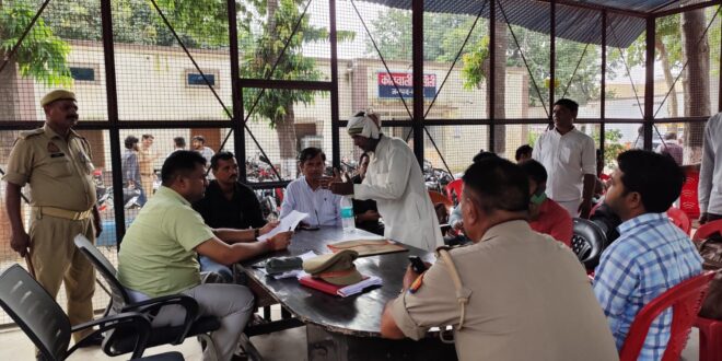 कोतवाली में आयोजित थाना समाधान दिवस में तहसीलदार विजय कुमार शुक्ला ने फरियादियों की समस्याओं को सुना और उनके गुणवत्तापूर्ण निस्तारण को आवश्यक दिशा निर्देश दिए। इस दौरान कोतवाली क्षेत्र के गांव परवेजनगर निवासी नरेश पुत्र मिश्रीलाल का का आरोप है कि उसकी भूमि पर गांव परसिया निवासी मुकेश, प्रमोद एवं राजेश शर्मा पुत्र शिवशंकर दबंगई के बल पर कब्जा करना चाहते है। तहसीलदार विजय कुमार शुक्ला ने तत्काल जांच कर कार्यवाही के निर्देश दिए। इस दौरान राजस्व निरीक्षक विनोद शर्मा, शादाब अली नकवी, लेखपाल अमित कुमार, संदीप कुमार, अरविंद कुमार, रामौतार यादव, मोहित शर्मा आदि उपस्थित रहे।