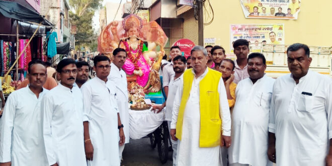बिल्सी। मोहल्ला संख्या पांच स्थित सिद्धपीठ श्री बालाजी धाम की ओर से नवरात्र से पूर्व रविवार को नगर के मुख्य बाजार में मां दुर्गा की प्रतिमा के साथ शोभायात्रा निकाली गई। जिसका नगर के व्यापारियों ने जगह-जगह स्वागत किया। बालाजी धाम पर सबसे पहले विभिन्न अनुष्ठान संपन्न कराए गए। उसके बाद नगर के थाना मोड़ से माता रानी की शोभायात्रा को शुरु किया गया। जो नगर के जैन मार्केट, पालिका बाजार, कटरा बाजार, अटल चौक, सर्राफा बाजार, बाजाली चौक होते हुए बालाजी धाम पर पंहुची। जिसके बाद मां दुर्गा की प्रतिमा को धूमधाम से स्थापित किया। नवरात्र के दौरान दरबार में विभिन्न धार्मिक कार्यक्रम संपन्न कराए जाएगें। नवरात्र के समापन के बाद उक्त प्रतिमा का कछला घाट पर जाकर विसर्जन किया जाएगा। इस मौके पर महंत मटरूमल शर्मा महाराज, मुकेश गुप्ता, दीपक माहेश्वरी, राहुल कुमार, संदीप माहेश्वरी, नीरज कुमार, पुष्कीन माहेश्वरी, ओजित शर्मा, रंजन माहेश्वरी, जितेंद्र कुमार, राजेश कुमार आदि मौजूद रहे।