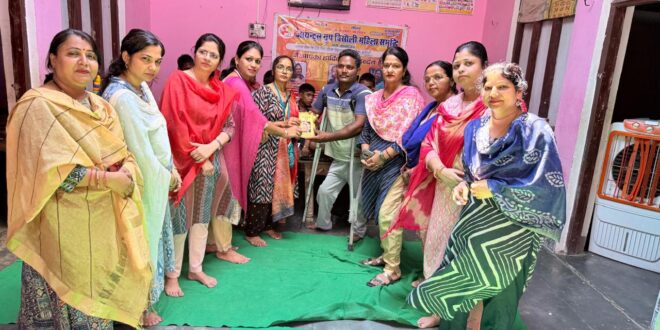 बिसौली। जायंट्स ग्रुप ऑफ बिसौली महिला समृद्धि के द्वारा छठे दिन मानसिक मन्दित आश्रय गृह प्रशिक्षण केंद्र बिसौली में मानसिक रूप से मंदित बच्चों और अध्यापकों से हरि नाम संकीर्तन कराया और गीता का ज्ञान दिया। श्रीमती अंजलि ने अनुरोध किया कि बच्चों से रोज हरि नाम संकीर्तन कराए उनके साथ बैठ कर गीता पाठ करें जिससे बच्चों का मानसिक विकास हो सके। आश्रय केंद्र के सचिव धर्मवीर सिंह, कोडिनेटर अनिल कुमार, सुनील, नत्थू, राजेश, हुकुम सिंह, मनोज आदि को गीता बुक एवं अन्य आध्यात्मिक पुस्तकें और चैटिंग बैग का वितरण किया।सभी बच्चे कीर्तन करके बेहद खुश थे उन्होंने कीर्तन के साथ नृत्य भी किया।इस अवसर पर ग्रुप की अध्यक्ष अंजलि अग्रवाल, सचिव आंचल वार्ष्णेय, कोषाध्यक्ष ऋतु साहनी, पारुल अग्रवाल, रूपम गुप्ता, कंचन सक्सेना, डॉक्टर स्वाति रंजन, सरिता वार्ष्णेय, रोजी अग्रवाल, मानसी गर्ग, राखी वार्ष्णेय, शिवानी अग्रवाल, रूबी अग्रवाल, अंशिका गर्ग, ममता यादव, स्मिता यादव, रुचि वार्ष्णेय, सपना वार्ष्णेय, प्रीति वार्ष्णेय, रोचन अग्रवाल, रेनू अग्रवाल, सिम्मी साहनी, राधिका अग्रवाल, पिंकी वार्ष्णेय, आदि सदस्य उपस्थित रही।