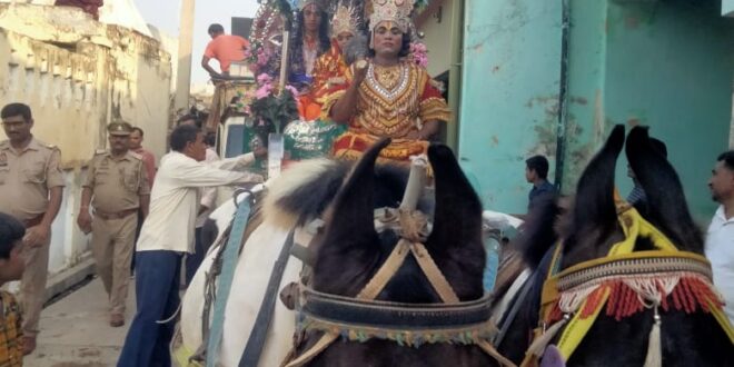 आदर्श रामलीला कार्यक्रम से पहले नगर में झांकी निकाली गई