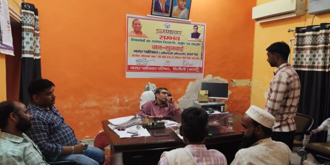 बिसौली। नगर पालिका में नगरवासियों की समस्याओं के त्वरित समाधान के उद्देश्य से सोमवार को अधिशासी अधिकारी रवि यादव ने संभव अभियान के तहत जनसुनवाई की। इस दौरान दो फरियादियों ने अपनी समस्याएं सुनाई, ईओ श्री यादव ने अधीनस्थों को तुरंत निस्तारण करने का निर्देश दिया। उन्होंने बताया कि नगर पालिका परिषद प्रत्येक सोमवार को जनसुनवाई दिवस पर पालिका में आयोजित होने वाली जनसुनवाई में नगरवासियों की शिकायतों को गंभीरता पूर्वक सुनवाई करता है। इस दौरान मशकूर खान, जितेंद्र सिंह, राजीव कुमार, महेश शर्मा आदि उपस्थित रहे।