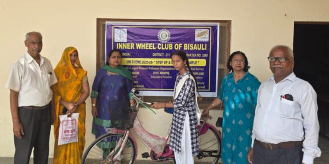 बिसौली। नगर के राममूर्ति देवी बालिका विद्यालय में आर्थिक रूप से कमजोर छात्रा को साइकिल प्रदान की गई। स्त्री रोग विशेषज्ञ डॉ. सुविधा माहेश्वरी एवं भारती अग्रवाल ने कहा कि हमारा परिवार हमेशा गरीब और आर्थिक रूप से कमजोर लोगों की मदद के लिए सदैव तत्पर रहता है।