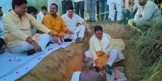 उसावां:ब्लॉक क्षेत्र में ग्राम बीरमपुर भदेली नगर पंचायत की कान्हा गौशाला 21 बीघा में 1.69 करोड रुपए की लागत से विधायक राजीव कुमार सिंह बब्बू भैया भूमि पूजन कर निर्माण का शुभारंभ किया।
