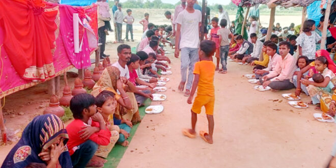 मंदिर पर भक्तों ने कराया भंडारा, प्रसाद को उमड़ी भीड़