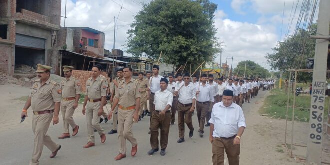 उघैती(बदायूं)राष्ट्रीय स्वयंसेवक संघ (आरएसएस) ने अपने स्थापना दिवस के अवसर पर उघैती क्षेत्र में पथ संचलन निकाला। संघ के 100 वर्ष पूरे होने के उपलक्ष्य में आयोजित इस कार्यक्रम में स्वयंसेवकों ने अपनी शक्ति और अनुशासन का प्रदर्शन किया।शाम 4 बजे शुरू हुए इस आयोजन का उद्देश्य हिंदू समाज को संगठित होने का संदेश देना था।कार्यक्रम का शुभारंभ मां भारती के चित्र पर दीप प्रज्वलित कर किया गया।जिला प्रचारक राजीव ने स्वयंसेवकों को संबोधित करते हुए बताया कि संघ की स्थापना 1925 में हुई थी और अब इसने 100 वर्ष पूरे कर लिए हैं।उन्होंने एक संगठित हिंदू समाज की विजय की आकांक्षा पर जोर दिया।शताब्दी वर्ष के उपलक्ष्य में, उघैती और खितौरा में संघ की प्रार्थना के बाद यह पथ संचलन निकाला गया। जिला प्रचारक राजीव और शरद के नेतृत्व में, संघ की गणवेश में स्वयंसेवक खितौरा के पीओएच चिल्ड्रन स्कूल और उघैती से चलकर नगर के प्रमुख मार्गों से गुजरे। इसमें खंड कार्यवाह सचिन अंकित तिवारी, संघचालक मदनलाल, आरडी शर्मा, दलबीर सिंह सहित अंग प्रताप, शिवम, अभिनव भारद्वाज, अरुण भारद्वाज, संतोष सिंह, तिलक सिंह, अंकित और देवेश गुप्ता जैसे कई स्वयंसेवक शामिल रहे।सुरक्षा व्यवस्था के मद्देनजर उघैती थाना प्रभारी अवधेश कुमार भारी पुलिस बल के साथ मौके पर मौजूद रहे।