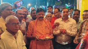 लगभग दो घंटा देरी से पहुंचे विधायक महेशचंद्र गुप्ता ने रात करीब 10 बजे रामलीला महोत्सव का शुभारंभ किया। कहा, ऐसे आयोजनों से लोगों का अपनी संस्कृति से जुड़ाव बना रहता है। राम की लीलाओं का मंचन सिर्फ मनोरंजन तक सीमित न रखें, बल्कि उसके पात्रों के आदर्शों से सीख लें। रामलीला को देखने के लिए दूर दूर के लोग आते है और रामलीला का आनंद लेते है।इस अवसर पर कमेटी अध्यक्ष राहुल वार्ष्णेय, मुकेश वार्ष्णेय डेयरी महामंत्री, योगेश वार्ष्णेय कोषाध्यक्ष, रवि वार्ष्णेय, अरुण शर्मा,लोकेश वार्ष्णेय, पवन वार्ष्णेय, विमलेश गुप्ता प्रबंधक, भाजपा मंडल अध्यक्ष राघव चौहान,विराट मंत्री,अमित पुसगवां मंच व्यवस्थापक आदि मौजूद रहे।