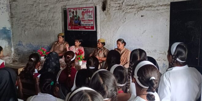 की गई जिसमें छात्राओं को समाज में महिलाओं पर होने वाले उत्पीड़न व छेड़खानी से बचने के लिए जागरूक किया साथ ही छात्राओं को महिला हेल्पलाइन नंबर 1090 पुलिस हेल्पलाइन 112 नंबर चाइल्ड हेल्पलाइन 1098 नंबर उपलब्ध कराए अधिकारी जी ने ही छात्राओं को गुड टच और बेड टच के संबंध में जानकारी देकर बताया कि किसी भी प्रकार के उत्पीड़न या छेड़खानी के खिलाफ चुप न रह कर तुरंत दिए गए नंबर पर शिकायत दर्ज कराएं इस मौके पर प्रधानाचार्य अंबुज वार्ष्णेय,अरुण कुमार,महिला कांस्टेबल रितु तोमर,महिला कांस्टेबल प्रियांशी,महिला कांस्टेबल सविता देवी,शिवांगी सागर,असफिया खान, खुशबू खान, महविश खान,धर्मेंद्र श्रीवास्तव,मोहित यादव,नीरज आदि मौजूद रहे।