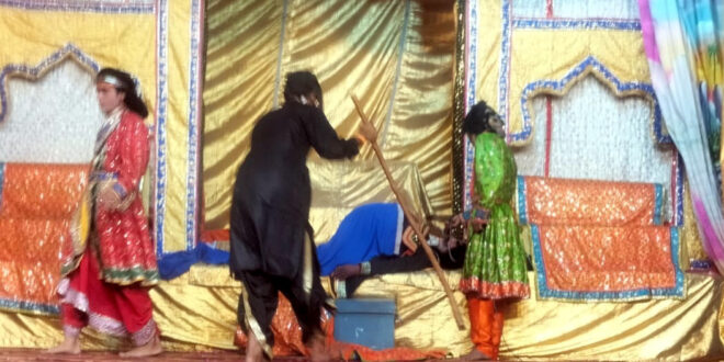 बिल्सी। नगर में मोहल्ला संख्या छह स्थित रामलीला मैदान पर गोशाला रामलीला कमेटी की ओर से आयोजित रामलीला के मंच पर मंगलवार की रात वृंदावन के कलाकारों ने कुम्भकरण वध की लीला का मंचन किया। युध्द लगातार मिल रही हार के बाद लंका पति रावण अपने भाई कुंभकरण के पास पहुंचा। उस समय वह गहरी नींद में सो रहा था। किसी प्रकार रावण ने कुंभकरण को जगाया। इसके बाद उसको लंका की मौजूदा स्थिति से अवगत कराया। समाचार जान कर कुंभकरण व्यथित हुआ। अपने भाई रावण से लंका का ताजा समाचार जान कर कुंभकरण युद्ध क्षेत्र में पहुंच गया। कुंभकरण की गर्जना सुन कर भालू और वानर भिड़ गये। दोनों पक्षों ने एक दूसरे को युद्ध क्षेत्र में खूब छकाया। इसके बावजूद कुंभकरण पस्त नहीं हुआ। तब हनुमान ने उस पर प्रहार किया। पहले वह जमीन पर गिर गया। इसके बाद फिर उठ खड़ा हुआ। नल और नील ने भी उस पर वार किया, लेकिन वह परास्त नहीं हुआ। बलशाली कुंभकरण की मार से अंगद और सुग्रीव मूर्छित हो गये। हनुमान भी मूर्छित हो गये। अंत में राम के बाण से कुंभकरण का सिर धड़ से अलग हो गया। इसके बाद रावण चिंतित हो गया। तब रावण का पुत्र मेघनाथ खुद लड़ने के लिए आता है और देवी मठ में बैठ कर हवन-यज्ञ करने लगता है। तब लक्ष्मण हवन विध्वंस कर मेघनाद को युद्ध के लिए ललकारते हैं। जिसके बाद लीला का समापन हो जाता है। मंचन के दौरान दौरान प्रबंधक विनोद पालावील, उमेश चंद्र गुप्ता, अजीत सिंह गूर्जर, संजीव वार्ष्णेय, विवेक राठी, जितेंद्र वार्ष्णेय, हरिओम राठौर, शेखर सक्सेना, प्रखर माहेश्वरी आदि मौजूद रहे।