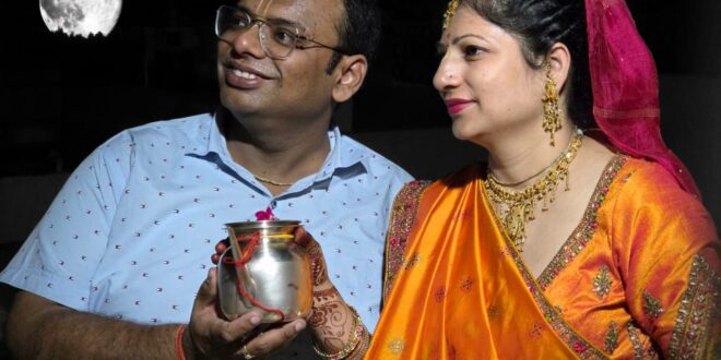 बिसौली। नगर में करवा चौथ का पर्व बड़े ही श्रद्धा पारंपरिक उत्साह के साथ मनाया गया। विवाहित महिलाओं ने अपने पति की दीघार्यु और सुख समृद्धि की कामना करते हुए निर्जला व्रत रखा। शाम होते ही महिलाओं ने सोलह श्रृंगार कर करवा माता की पूजा की और चंद्रमा के निकलने का बेसब्री से इंतजार किया। चंद्रमा के दर्शन होने के बाद महिलाओं ने अपने पति के हाथों से जल ग्रहण कर अपना व्रत खोला।