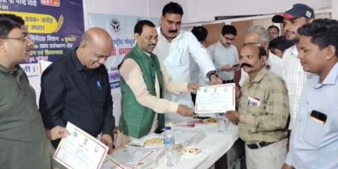 उझानी कृषि विज्ञान केंद्र में आयोजित मैत्री राष्ट्रीय गोकुल मिशन के अवसर पर एक कार्यक्रम में जनपद के समस्त सक्रिय कृत्रिम गर्भधान,टीकाकरण,बधियाकारण,प्राथमिक चिकित्सा के कार्य करने वाले मैत्रीगणों को कुशल कार्य होने पर प्रशस्ति पत्र विधायक हरीश शाक्य द्वारा तथा मुख्य पशु चिकित्सा अधिकारी सरोज डॉक्टर समदर्शी सरोज ने सभी पैरावेट पशु मित्र एवं मैत्रियों को प्रशस्ति पत्र प्रदान किया जिसमे हरीश शाक्य विधायक,डॉ समदर्शी सरोज मुख्य पशु चिकित्सा अधिकारी ने नेत्र पाल सिंह सैलानी मैत्री को प्रशस्ति पत्र देकर मनोबल को बढ़ाया तथा पशुपालन विभाग के तहत कुशल कार्य करने की सराहना की इस अवसर पर पशुपालन विभाग की ओर से भूरी भूरी प्रशंसा की गई
