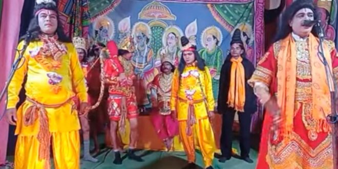 बिसौली। आदर्श रामलीला कमेटी, दिसौली गंज के रंगमंच पर राम-रावण युद्ध के उपरांत रावण वध एवं प्रभु श्रीराम के राज्याभिषेक की भव्य लीला का मंचन किया गया। मंच पर कलाकारों ने भगवान श्रीराम, लक्ष्मण, सीता, हनुमान और रावण के पात्रों को जीवंत करते हुए ऐसा अभिनय प्रस्तुत किया कि दर्शक भक्ति भाव में डूब गए। लीला के दौरान जब प्रभु श्रीराम ने रावण का वध किया तो जय श्रीराम के गगनभेदी उद्घोषों से पूरा परिसर गूंज उठा। तत्पश्चात श्रीराम के अयोध्या आगमन और राज्याभिषेक की दिव्य झांकी ने भक्तों के हृदय को आनंद और आस्था से भर दिया। मंचन के इस पावन अवसर पर बड़ी संख्या में श्रद्धालु दर्शक उपस्थित रहे, जिन्होंने भगवान की इस भक्तिमय लीला का दर्शन कर स्वयं को धन्य अनुभव किया।