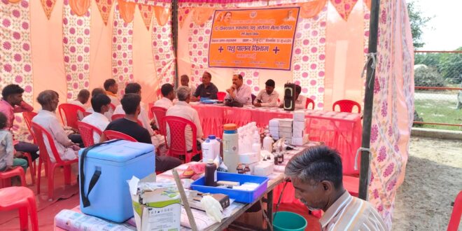 मुजरिय विकासखंड सहसवान के अंतर्गत ग्राम पंचायत अबू नगर में शासन द्वारा संचालित पंडित दीनदयाल उपाध्याय पशु आरोग्य मेला का आयोजन अब्बुनगर मे पशुपालन विभाग सहसवान के राजकीय पशु चिकित्सालय सहसवान से एक शिविर का आयोजन डॉक्टर कर्मवीर राज सिंह उपमुख्य पशु चिकित्सा अधिकारी सहसवान द्वारा समस्त स्टाफ सहित पशुधन प्रसार अधिकारी,समस्त पैरावेट गण और मैत्रीगण एवं डोरइनसेमीनेटर,सहित उपस्थित रहकर पशु आरोग्य मेला का आयोजन में ग्रामीण द्वारा आसपास के गांव से शिविर मे लाये गए पशुओं को पशु चिकित्सा, कृत्रिम गर्भाधान, बधिया करण,टीकाकरण,पशु बांझपन चिकित्सा, सहित समस्त प्रकार के उपचार के लिए लाये गए थे पंडित दीनदयाल उपाध्याय पशु आरोग्य मेला शिविर का आयोजन का उद्घाटन क्षेत्र पंचायत सदस्य रामवीर कश्यप प्रधान पति राजेश कश्यप द्वारा मां सरस्वती के चित्र पर दीप प्रजवलित कर तथा गौ माता को गुड़ खिलाकर तथा उसका माल्यार्पण कर फीता काट कर शिविर का आयोजन शुभारंभ किया गया जिसमें उप मुख्य पशु चिकित्सा अधिकारी डॉक्टर कर्मवीर राज सिंह ने समस्त प्रकार के पशु में होने वाले रोगों से बचाव हेतु सभी बिंदुवार कारण बताएं तथा शत प्रतिशत पशुओं में समय से टीकाकरण करने की सलाह दी और बीमार पशुओं के रोगों के संबंध में उपचार हेतु कुशल प्रशिक्षित पशु चिकित्सक द्वारा ही उपचार कराने की सलाह बताई गई इस अवसर पर पशुधन प्रसार अधिकारी शैलेंद्र कुमार सिंह ने तथा पैरावेट एनपीएस सैलानी पशु प्राथमिक चिकित्सा, बधियाकरण,तथा पैरावेट मोहम्मद फहीम खान द्वारा कृत्रिम गर्भाधान,डोरेनसेमिनटर दिनेश कुमार, मैत्री कमल कुमार तथा अवनपाल द्वारा टीकाकरण कार्य मे पूर्ण सहयोग कर टीकाकरण किया वहीं पर चालक रविंद्र कुमार यादव मौजूद रहे सरकार द्वारा संचालित पंडित दीनदयाल उपाध्याय पशु आरोग्य मेला का अब्बू नगर ग्राम पंचायत शिविर में आए कुल 510 पशु पंजीकरण हुए जिसमें 25 पशुओं का बधिया करण किया गया 210 पशुओं का टीकाकरण किया गया 188 पशुओं का बाँझपन की चिकित्सा की गई 25 पशुओं में कृत्रिम गर्भाधान का कार्य किया गया 502 पशुओं को कृमिनाशक दवा का वितरण किया गया 70 पशुओं में पशु चिकित्सा कार्य किया गया उपरोक्त शिविर में डॉक्टर कर्मवीर राज सिंह उपमुख्य पशु चिकित्सा अधिकारी के नेतृत्व में शिविर सकुशल संपूर्ण रूप से संचालन किया गया इस अवसर पर गांव के तथा आसपास के क्षेत्रवासी ग्रामीण गणों सैकड़ो की संख्या की उपस्थिति मौजूद रही