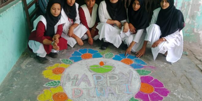 गया रंगोली प्रतियोगिता में प्रथम स्थान कायनात व अलसीफा का व द्वितीय स्थान जोया व इस्फ़ा का तथा तृतीय स्थान पर सुरभि, अलीना, निशवा,शिफा रहीं दीपक सजाओ प्रतियोगिता में प्रथम रही इस्फ़ा द्वितीय स्थान महेरा ने प्राप्त किया व तृतीय स्थान पर आलिशना रहीं। प्रधानाचार्य श्रीअंबुज वार्ष्णेय जी छात्र छात्राओं को दिवाली पर्व पर सुरक्षित पटाखे व उनसे उचित दूरी बनाने के बारे में बताया साथ ही चाइनीज पटाखों के बचने व उनसे होने वाली हानियों के बारे में बताया।विद्यालय की कमेटी के सौजन्य से समस्त स्टाफ को दीपावली पर्व के उपलक्ष्य में मिष्ठान का वितरण किया गया।इस अवसर पर विद्यालय कमेटी अध्यक्ष जनाब नसीम राईन,अरुण कुमार आनन्द,कैलाश चंद्र सक्सेना,धर्मेंद्र श्रीवास्तव,मुनेंद्र माथुर,हरि सिंह,मोहित यादव, सोनू शर्मा,खुशबू खान,असफिया खान,मेहविश खान,मारिया राईन,शिवांगी सागर,गायत्री,राधा भारती,आदि मौजूद रहे।