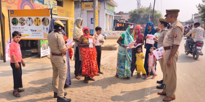 उत्तर प्रदेश शासन द्वारा महिलाओं/बालिकाओं के सुरक्षार्थ व स्वालंबन हेतु चलाये जा रहे मिशन शक्ति अभियान (फेज-5.0) के तहत वरिष्ठ पुलिस अधीक्षक,बदायूँ डॉ0 बृजेश कुमार सिंह के निर्देशन में आज दिनाँक 19.10.2025 को जनपद के समस्त थानों पर नियुक्त महिला पुलिसकर्मियों द्वारा अपने-अपने थाना क्षेत्रान्तर्गत आयोजित कार्यक्रम में बालिकाओं को जागरुक करने के साथ ही महिला संबंधित समस्याओं के निस्तारण कराने के संबंध में चौपाल का आयोजन कर जागरुक किया गया । महिलाओं एवं बालिकाओं के साथ जुड़ कर उन्हें सशक्त एवं सुरक्षित वातावरण देने का प्रयास किया जा रहा है । साथ ही “मिशन शक्ति 5.0” अभियान के अन्तर्गत जनपद के सभी थानों द्वारा प्रमुख बाजारों, कस्बा,चौराहों, स्कूलों/कॉलेजों, धार्मिक स्थलों तथा अन्य महत्वपूर्ण स्थानों पर महिला पुलिस कर्मियों द्वारा शासन व पुलिस विभाग द्वारा महिलाओं की सुरक्षा और सशक्तिकरण स्वावलंबन हेतु चलाई जा रही विभिन्न विभागों की योजनाओं जैसे मुख्यमंत्री कन्या सुमंगला योजना, निराश्रित महिला पेंशन योजना, उ०प्र० राज्य ग्रामीण आजीविका मिशन, राष्ट्रीय पोषण योजना, मुख्यमंत्री सामूहिक विवाह योजना, बेटी बचाओ-बेटी पढ़ाओ, प्रधानमंत्री उज्जवला योजना, पी०एम० स्वानिधि योजना, पी०एम० सम्मान निधि योजना, वन स्टाप सेन्टर, आयुष्मान योजना, सुरक्षित मातृत्व आश्वासन सुमन योजना, महिला शक्ति केन्द्र योजना, मुख्यमंत्री अभ्युदय योजना, कन्या सुमंगला योजना तथा पुलिस विभाग से संबंधित विभिन्न हेल्पलाइन नंबरों वीमेन पावर लाइन 1090, पुलिस आपातकालीन सेवा-112 इमरजेन्सी कॉल/पैनिक बटन-मोबाइल पर डेमो, सी०एम० हेल्प लाइन 1076, स्वास्थ्य सेवा हेल्प लाइन-102, एम्बुलेंस सेवा-108, महिला हेल्प लाईन-181, साइबर क्राइम हेल्पलाइन 1930 आदि के बारे मे पंपलेट बांटकर जागरूक किया गया। उत्तर प्रदेश शासन के निर्देशानुसार महिलाओं एवं बालिकाओं को सशक्त बनाने एवं जागरुक करने हेतु दिनांक 22.09.2025 से 21.10.2025 तक की अवधि में विशेष अभियान के तहत मिशन शक्ति फेज-05 को नियमित सुचारू रूप से चलाया जायेगा।