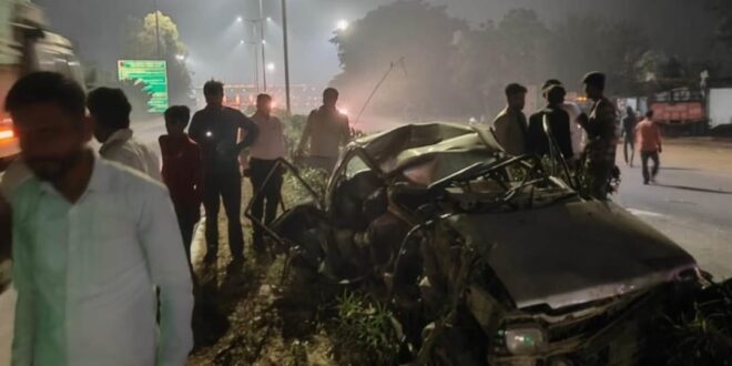 फतेहगंज पश्चिमी _ कस्बा फतेहगंज पश्चिमी नेशनल हाईवे टोल प्लाजा कांवरिया शिव मंदिर के पास सोमवार देर रात्रि में एक दर्दनाक सड़क हादसे ने पूरे इलाके को दहला दिया। जानकारी के अनुसार फतेहगंज पश्चिमी नेशनल हाईवे टोल प्लाजा खिरका स्थित शिव मंदिर के समीप एक तेज रफतार कार अनियंत्रित होकर हाइवे के डिबाइडर से टकराने के बाद बिजली के खंभे से जा भिड़ी। टक्कर इतनी जबरदस्त थी कि कार के परखच्चे उड़ गये और कार में बैठे पांच युवकों में से एक की मौत हो गई और चार लोग गंभीर रूप से घायल हो गये। सूचना पर पहुंचे घायलों के परिजनों एवं लोधी नगर के सभासद महेंद्र पाल शर्मा ने पुलिस को फोन कर घटना की जानकारी दी। सूचना पर पहुंची पुलिस ने घायलों को स्थानीय लोगों की मदद से तुरंत अस्पताल पहुंचाया गया। जहां इलाज के दौरान कस्बा फतेहगंज पश्चिमी मोहल्ला लोधी नगर निवासी अरूण श्रीवास्तव पुत्र वेदराम श्रीवास्तव उम्र 18 वर्ष निवासी की मौत हो गयी। मृतक अरुण श्रीवास्तव की मौत की खबर सुनकर उनके घर में कोहराम मच गया। मां लक्ष्मी देवी, पिता वेदपाल श्रीवास्तव एवं अन्य परिजनों का रो-रोकर बुरा हाल है। और उनके घर में मातम छाया हुआ है। सभासद महेंद्र पाल शर्मा एवं अन्य पड़ोसियों ने मृतक के परिजनों को सांत्वना देकर ढांढस बंधाया। सभासद महेंद्र पाल शर्मा ने बताया कि मृतक के पिता वेदपाल श्रीवास्तव के तीन बच्चे हैं जिसमें एक लड़की और दो लड़के हैं जिस बच्चे की मौत हुई है वह दूसरे नंबर पर था। मृतक अरुण ट्रैक्टर का काम सीखता था। और बताया कि सड़क हादसे में गंभीर रूप से घायल विजय, दिनेश, रवि और कुनाल गंगवार उर्फ छोटू चारो युवक फतेहगंज पश्चिमी के निवासी हैं। चारों घायल युवकों को बरेली महानगर के निजी अस्पताल में भर्ती कराया गया है, जिनमें से दो की हालत अत्यंत नाजुक बताई जा रही है और दोनों को आईसीयू में बैंटिलेटर सर्पोट पर रखा गया है। चिकित्सकों डॉक्टर के मुताबिक, गंभीर रूप से घायल युवकों को अभी तक होश नहीं आया है। इस हादसे में कुनाल गंगवार का हाथ कट गया, जबकि एक अन्य युवक को सिर और पैर में गंभीर चोटें आई हैं। बताया जा रहा है कि पांचो युवक कार द्वारा किसी कार्य से टोल प्लाजा के पास गए थे, तभी अचानक कार अनियंत्रित होकर डिबाइडर चढ़ते हुए खंभे से जा टकराई। टक्कर की आबाज सुनते ही आसपास के ग्रामीण और राहगीर मौके पर पहुंचे। सूचना पर पुलिस और टोल प्लाजा कर्मी भी घटना स्थल पहुंच गये और सभी घायलों को एंबुलेंश के जरिए अस्पताल पहुंचाया गया। वहीं फतेहगंज पश्चिमी पुलिस ने कार को कब्जे में लेकर हादसे के कारणों की जांच पड़ताल शुरू कर दी है।