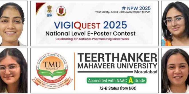 तीर्थंकर महावीर यूनिवर्सिटी के मेडिकल कॉलेज एंड रिसर्च सेंटर के एमबीबीएस स्टुडेंट्स प्रियांशा चावला, रिया चेची, निष्ठा रानी और अनन्या चावला राष्ट्रीय स्तर की ई-पोस्टर प्रतियोगिता विजीक्वेस्ट 2025 में अव्वल