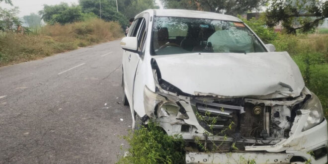 हाइवे पर नीलगाय से टकराई इनोवा, बाल-बाल भाजपा नेता