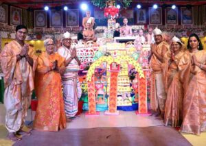 मुरादाबाद। तीर्थंकर महावीर यूनिवर्सिटी, मुरादाबाद के रिद्धि-सिद्धि भवन में आध्यात्मिक अनुष्ठान- श्री मज्जिनेन्द्र कल्पद्रुम महामण्डल विधान में समोशरण पूजन में मानव स्तम्भ पूजा, चैत्य प्रसाद पूजा, जल खातिका पूजा, उपवन भूमि पूजा, लतावन भूमि पूजा अष्ट अर्ध्य से विधि-विधान से हुईं। प्रज्ञाश्रवण उपाध्याय श्री 108 प्रज्ञानंद मुनि महाराज जी ने गणधर श्री ऋषभ सेन की भूमिका का निर्वाह किया। गणधर श्री ऋषभ सेन परमेष्ठि जी की ओमकारमय दिव्य ध्वनि आस्था का केंद्र रही। प्रज्ञानंद मुनि महाराज जी से सम्राट भरत चक्रवर्ती के रूप में टीएमयू के जीवीसी श्री मनीष जैन ने प्रश्न किया, कल्पद्रुम महामण्डल विधान से कौन से पुण्य की प्राप्ति होगी? श्री 108 प्रज्ञानंद जी ने इस सवाल का सारगर्भित जवाब देते हुए सम्यकत्व की महिमा का महत्व बताया। रिद्धि-सिद्धि भवन में महायज्ञ नायक की भूमिका में कुलाधिपति श्री सुरेश जैन के अलावा फर्स्ट लेडी श्रीमती वीना जैन, जीवीसी श्री मनीष जैन, श्रीमती ऋचा जैन, एग्जिक्यूटिव डायरेक्टर श्री अक्षत जैन, श्रीमती जहान्वी जैन की गरिमामयी मौजूदगी रही। कल्पद्रुम महामण्डल विधान में अमरोहा के जैन समाज से श्री अतुल जैन, नगरपालिका अध्यक्षा श्रीमती शशी जैन की उल्लेखनीय मौजूदगी रही।