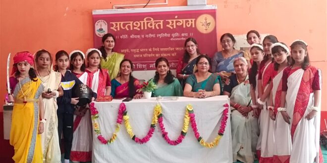 बरेली। सरस्वती शिशु मंदिर नैनीताल मार्ग में विद्या भारती के तत्वावधान में ‘सप्त शक्ति संगम’ कार्यक्रम का भव्य आयोजन किया गया। कार्यक्रम का शुभारंभ मां सरस्वती के समक्ष दीप प्रज्वलन और पुष्पार्चन के साथ हुआ। मुख्य अतिथि प्रो. अजिता सिंह तिवारी (बरेली कॉलेज), मुख्य वक्ता प्रो. नीलम गुप्ता (बरेली कॉलेज) तथा प्रांत सह संयोजिका श्रीमती अर्चना जी ने संयुक्त रूप से दीप प्रज्वलित कर कार्यक्रम की शुरुआत की।
