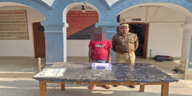 पुलिस ने अभियुक्त को एक तमंचा 315 बोर और एक जिंदा कारतूस सहित गिरफ्तार किया।