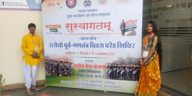 खेल एवं युवा कार्यक्रम मंत्रालय, भारत सरकार द्वारा संचालित एनएसएस क्षेत्रीय निदेशालय भोपाल ने आईटीएम यूनिवर्सिटी, ग्वालियर में दस दिवसीय शिविर का आयोजन किया, जिसका उद्घाटन मध्य प्रदेश विधानसभा अध्यक्ष नरेंद्र सिंह तोमर ने किया। इस शिविर में छः राज्यों से चयनित स्वयंसेवक प्रशिक्षण प्राप्त करेंगे और 26 जनवरी को राजधानी दिल्ली में आयोजित गणतंत्र दिवस समारोह में भाग लेंगे।