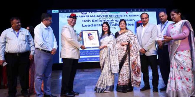 मुरादाबाद। भारतीय सेना के पूर्व वरिष्ठ अधिकारी एवम् विशिष्ट विचारक सेवानिवृत्त लेफ्टिनेंट जनरल विष्णु कांत चतुर्वेदी ने कहा, नेतृत्व केवल पद नहीं, बल्कि चरित्र, सहानुभूति और दृष्टिकोण से जन्म लेने वाली जिम्मेदारी है। उन्होंने सैन्य जीवन से जुड़ी अनेक प्रेरक घटनाए साझा करते हुए बताया, संकट की घड़ी में लिए गए निर्णय ही असली नेतृत्व की परीक्षा होते हैं। उन्होंने अनुशासन और सत्यनिष्ठा, अनुकूलनशीलता और निर्णय क्षमता, टीमवर्क और विश्वास, मानसिक दृढ़ता और सेवा सर्वाेपरि को नेतृत्व के पांच प्रमुख सूत्र बताए। लेफ्टिनेंट जनरल विष्णु कांत ने कहा, नेतृत्व का आधार नैतिक साहस और आत्म नियंत्रण है। बदलते हालातों में शीघ्र और विवेकपूर्ण निर्णय लेना सफलता की कुंजी है। कमांड एंड कम्पैशन की भावना से ही टीम मजबूत बनती है। सबसे बड़ी लड़ाइयां अक्सर मन के भीतर लड़ी जाती हैं। सच्चा नेता हमेशा दूसरों की भलाई को अपने हित से ऊपर रखता है। ले. जनरल चतुर्वेदी तीर्थंकर महावीर यूनिवर्सिटी, मुरादाबाद की ओर से लीडरशिप बियोंड यूनिफार्मः लेसंस फ्रॉम द आर्म्ड फोर्सज़ फॉर प्रोफेशनल एक्सीलेंस पर लीडरशिप टाक सीरीज़ के 16वें सेशन में बतौर मुख्य वक्ता बोल रहे थे। इससे पूर्व लेफ्टिनेंट जनरल विष्णु कांत चतुर्वेदी, डीन एकेडमिक्स प्रो. मंजुला जैन, एसोसिएट डीन एकेडमिक्स प्रो. अमित कंसल, फार्मेसी के प्राचार्य प्रो. आशु मित्तल आदि ने मां सरस्वती के समक्ष दीप प्रज्जवलित करके टॉक सीरीज़ का ऑडी में शुभारम्भ किया। इस अवसर पर मुख्य वक्ता को बुके देकर स्वागत और पोट्रेट देकर सम्मानित किया गया। टाक सीरीज के दौरान स्टुडेंट्स ने मुख्य वक्ता से सवाल करके अपनी जिज्ञासा को व्यक्त किया। अंत में लेफ्टिनेंट जनरल विष्णु कांत ने टीएमयू के कुलाधिपति सुरेश जैन, एग्जिक्यूटिव डायरेक्टर अक्षत जैन से शिष्टाचार भेंट भी की।