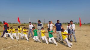 इसके बाद हुई रस्साकशी प्रतियोगिता ने पूरे मैदान में जोश की लहर दौड़ा दी। दोनों टीमों ने टीमवर्क, रणनीति और ताकत का शानदार प्रदर्शन किया। खिलाड़ियों के जोश और दर्शकों की गूंज ने मुकाबले को यादगार बना दिया।