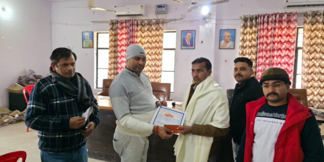 विशेष प्रगाढ़ पुनरीक्षण–2026 के तहत विधानसभा क्षेत्र में सर्वोच्च प्रदर्शन करने वाले बीएलओ को शनिवार को तहसील परिसर में सम्मानित किया गया। तहसीलदार विजय कुमार शुक्ला ने बीएलओ की उत्कृष्ट कार्यशैली की सराहना करते हुए उन्हें प्रशस्ति पत्र एवं अंगवस्त्र भेंट कर सम्मानित किया।
