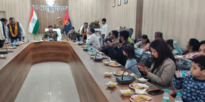 बदायूं। जनपद बदायूं से आज 30 नवंबर 2025 को अधिवर्षता आयु पूर्ण करने के उपरांत सेवानिवृत्त हुए पुलिस अधिकारियों और कर्मचारियों को रिज़र्व पुलिस लाइन के सभागार कक्ष में सम्मानपूर्वक विदाई दी गई। समारोह की अध्यक्षता अपर पुलिस अधीक्षक ग्रामीण डॉ. हृदेश कठेरिया ने की।