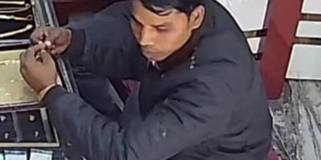 बदायूं। सदर कोतवाली क्षेत्र के हलवाई चौक के पास स्थित जुगल किशोर प्रहलादी लाल ज्वैलरी की दुकान से 28 नवंबर को एक शातिर चोर ग्राहक बनकर लगभग पांच लाख रुपए मूल्य की तीन सोने की चेन चोरी कर फरार हो गया। चोरी की यह पूरी घटना दुकान के सीसीटीवी में कैद हो गई है।
