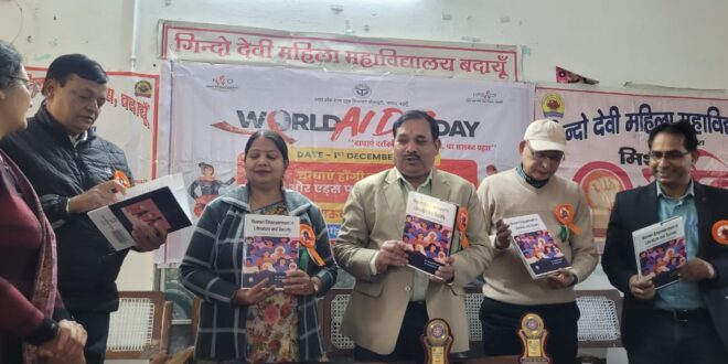 बदायूं। विश्व एड्स रोग दिवस के अवसर पर गुरुवार को गिंदो देवी महिला महाविद्यालय में एनएसएस इकाई के तत्वावधान में भव्य हस्ताक्षर अभियान, जागरूकता रैली, संगोष्ठी और पोस्टर प्रतियोगिता का आयोजन किया गया। कार्यक्रम की अध्यक्षता प्राचार्या प्रोफेसर सरला चक्रवर्ती तथा परियोजना निदेशक डीआरडीए अखिलेश चौबे ने संयुक्त रूप से की।