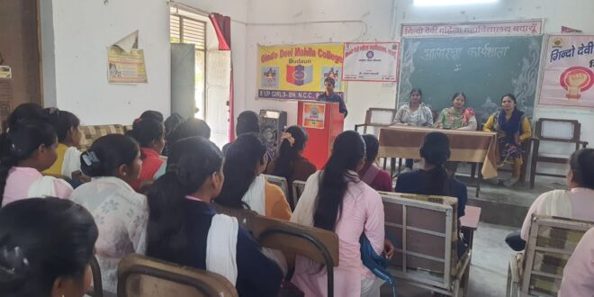 गिन्दो देवी महिला महाविद्यालय में आज आत्मरक्षा विषय पर एक दिवसीय कार्यशाला का सफल आयोजन किया गया। कार्यशाला का उद्देश्य छात्राओं में आत्मरक्षा के प्रति जागरूकता बढ़ाना तथा उन्हें विभिन्न प्रायोगिक तकनीकों का प्रशिक्षण प्रदान करना रहा।