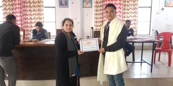 इस अवसर पर बुधवार को भाग संख्या 119, निजामुद्दीनपुर शाह बूथ पर शत प्रतिशत कार्य समय सीमा में पूरा हुआ। एसडीएम राशि कृष्णा एवं तहसीलदार विजय कुमार शुक्ला ने विजय चौहान को प्रशस्तिपत्र एवं अंग वस्त्र भेंट कर सम्मानित किया।