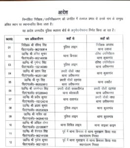 विवरण के अनुसार, सभी अधिकारी नवीन पदस्थापन स्थान पर प्रभावी रूप से अपनी जिम्मेदारियों का निर्वाह करेंगे।