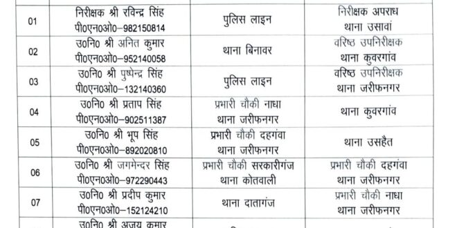 बदायूँ। वरिष्ठ पुलिस अधीक्षक डा. बृजेश कुमार सिंह द्वारा जनपद में विभिन्न पुलिस अधिकारियों के स्थानांतरण किए गए हैं।