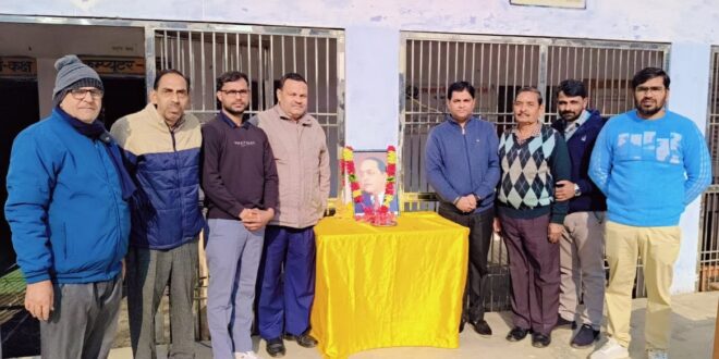 बिसौली। रामशरण वैद्य आदर्श इंटर कॉलेज मई–बसई में शनिवार को भारत रत्न, संविधान निर्माता और सामाजिक न्याय के अग्रदूत डॉ. भीमराव अंबेडकर के 70वें परिनिर्वाण दिवस पर भावपूर्ण श्रद्धांजलि सभा आयोजित की गई। इस अवसर पर प्रधानाचार्य, शिक्षकगण और समस्त स्टाफ ने बाबा साहेब के चित्र पर पुष्प अर्पित कर उन्हें नमन किया।