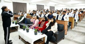 तीर्थंकर महावीर डेंटल कॉलेज एंड रिसर्च सेंटर में हर्टफुलनेस इंस्टिट्यूट की ओर से स्ट्रेस मैनेजमेंट प्रोग्राम में योग प्रशिक्षक श्री गौरव त्यागी ने स्टुडेंट्स को दिया योग का प्रशिक्षण