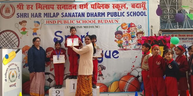 बदायूं। श्री हर मिलाप सनातन धर्म पब्लिक स्कूल में आयोजित क्रीड़ा महोत्सव का आज बड़े ही धूमधाम और उत्साह के साथ समापन किया गया। महोत्सव में नन्हे-मुन्ने बच्चों ने विभिन्न खेल स्पर्धाओं में भाग लेकर न केवल मनोरंजन किया, बल्कि शानदार प्रदर्शन करते हुए अपनी प्रतिभा का परिचय भी दिया।