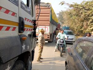पुलिस ने यातायात बाधित करने और ओवरलोडिंग के नियमों का उल्लंघन करने के आरोप में ट्रैक्टर-ट्रॉली के खिलाफ कार्रवाई की है। प्रशासन ने स्पष्ट संदेश दिया है कि ओवरलोडिंग कर सड़क सुरक्षा और यातायात व्यवस्था को खतरे में डालने वालों के खिलाफ सख्त कदम उठाए जाएंगे।
