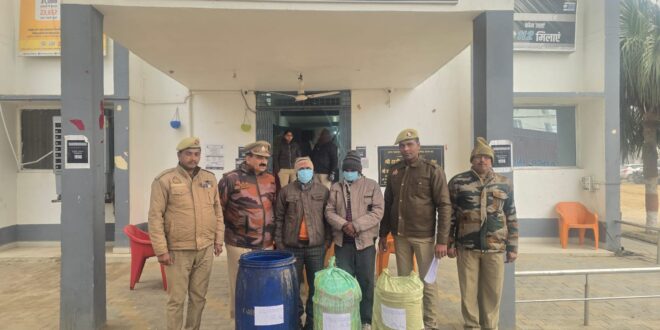 थाना दातागंज पुलिस ने 17 दिसंबर 2025 को ग्राम गढ़ा स्थित जसवीर के मकान से मोरपाल पुत्र बालकराम तथा नन्हेलला उर्फ नेत्रपाल पुत्र सोनपाल, दोनों निवासी ग्राम गढ़ा थाना दातागंज जनपद बदायूं को गिरफ्तार किया। अभियुक्तों के कब्जे से दो अदद 10-10 लीटर के जरीकेन कच्ची शराब, एक गैस चूल्हा भट्टी तथा शराब बनाने के उपकरण बरामद किए गए। मौके पर मौजूद लगभग 130 लीटर लहन को नष्ट किया गया।