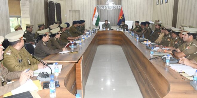 बदायूँ/बरेली: पुलिस उपमहानिरीक्षक बरेली परिक्षेत्र, अजय कुमार साहनी ने वरिष्ठ पुलिस अधीक्षक बदायूँ, डॉ. बृजेश कुमार सिंह के साथ पुलिस लाइन सभागार कक्ष में जनपद की कानून एवं शांति व्यवस्था तथा अपराध नियंत्रण को लेकर समस्त राजपत्रित अधिकारियों एवं थाना प्रभारियों के साथ गोष्ठी आयोजित की।