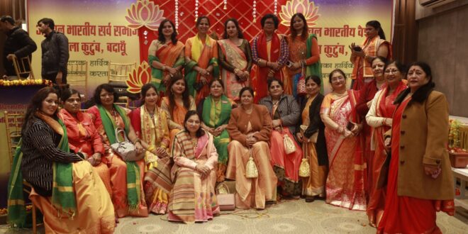 भारतीय सर्व समाज महिला कुटुंब एवं अखिल भारतीय वैश्य महिला कुटुंब, बदायूं के तत्वावधान में आज वैभव लॉन के प्रांगण में श्रद्धा, भक्ति और उल्लास के साथ तुलसी पूजन कार्यक्रम का आयोजन किया गया। कार्यक्रम की संस्थापिका डॉ. प्रतिभा गुप्ता एडवोकेट ने बताया कि उनके विद्यालय सेंट स्टीफेंस एकेडमी, दातागंज से तुलसी पौधे “बेबी प्लांट” के रूप में प्राप्त होते हैं। इन्हें तीन माह तक पूर्ण निष्ठा और सेवा भाव के साथ मिट्टी के पॉट में उगाया जाता है और फिर पॉट का रंग रोगन कर वाहन से बदायूं लाया जाता है।