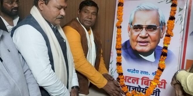 कार्यक्रम में अटल बिहारी वाजपेई के योगदान और उनके आदर्शों को याद कर उन्हें नमन करते हुए राष्ट्र सेवा और समाज कल्याण में उनकी जीवनशैली को अपनाने का संकल्प लिया गया।