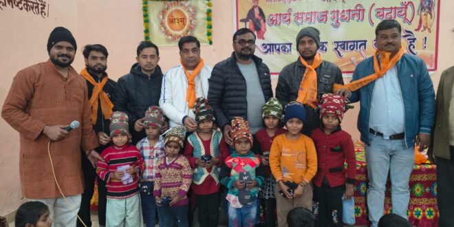 तहसील क्षेत्र बिल्सी के ग्राम गुधनी स्थित यज्ञ मंदिर में गल्ला व्यापारी मनोज जैन सहित स्थानीय व्यापारियों की ओर से सामाजिक सरोकार का परिचय देते हुए कंबल वितरण कार्यक्रम का आयोजन किया गया। कड़ाके की ठंड को देखते हुए आयोजित इस कार्यक्रम में 100 असहाय एवं जरूरतमंद लोगों को ठंड से बचाव के लिए कंबल वितरित किए गए।
