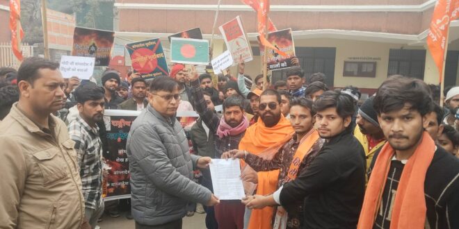प्रदर्शनकारियों ने कहा कि बांग्लादेश में हिंदू समुदाय के लोगों पर लगातार हमले हो रहे हैं। उन्होंने दीपू दास की निर्मम हत्या का जिक्र करते हुए घटना पर गहरा आक्रोश व्यक्त किया। साथ ही भारत सरकार से बांग्लादेश में हिंदुओं की सुरक्षा सुनिश्चित करने और देश में रह रहे अवैध बांग्लादेशियों को बाहर निकालने के लिए ठोस कदम उठाने की मांग की।