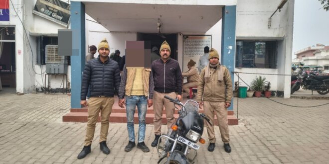 थाना सहसवान पर पंजीकृत मु0अ0सं0 291/25 धारा 303(2) बीएनएस अज्ञात के अनावरण हेतु की जा रही कार्रवाई के दौरान दिनांक 03 जनवरी 2026 को मुखबिर की सूचना पर पुलिस ने नाधा रोड से बिसौली रोड की ओर जाने वाले कच्चे रास्ते से अभियुक्त मनोज पुत्र प्रताप सिंह निवासी कमालपुर जल्लूनगर थाना जरीफनगर जनपद बदायूँ को चोरी की एक अदद मोटरसाइकिल हीरो स्प्लेंडर संख्या UP24BF4051 के साथ गिरफ्तार किया।